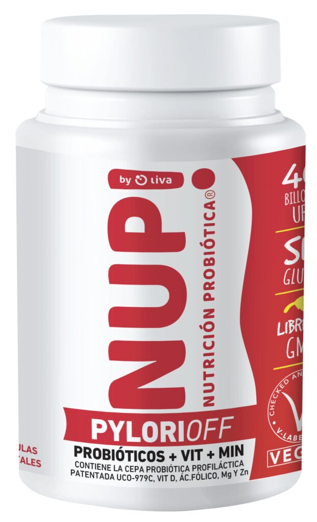 En formato de cápsulas, el producto es fuente de probióticos, vitaminas y minerales como magnesio, zinc, ácido fólico (vitamina B9) y vitamina D2, ideal para mejorar la permeabilidad intestinal. Contiene más de 40 billones de cepa probiótica patentada Lactobacillus Fermentum UCO-979C, validada científicamente contra el patógeno Helicobacter pylori. Es apto para celiacos, veganos e intolerantes a la lactosa.