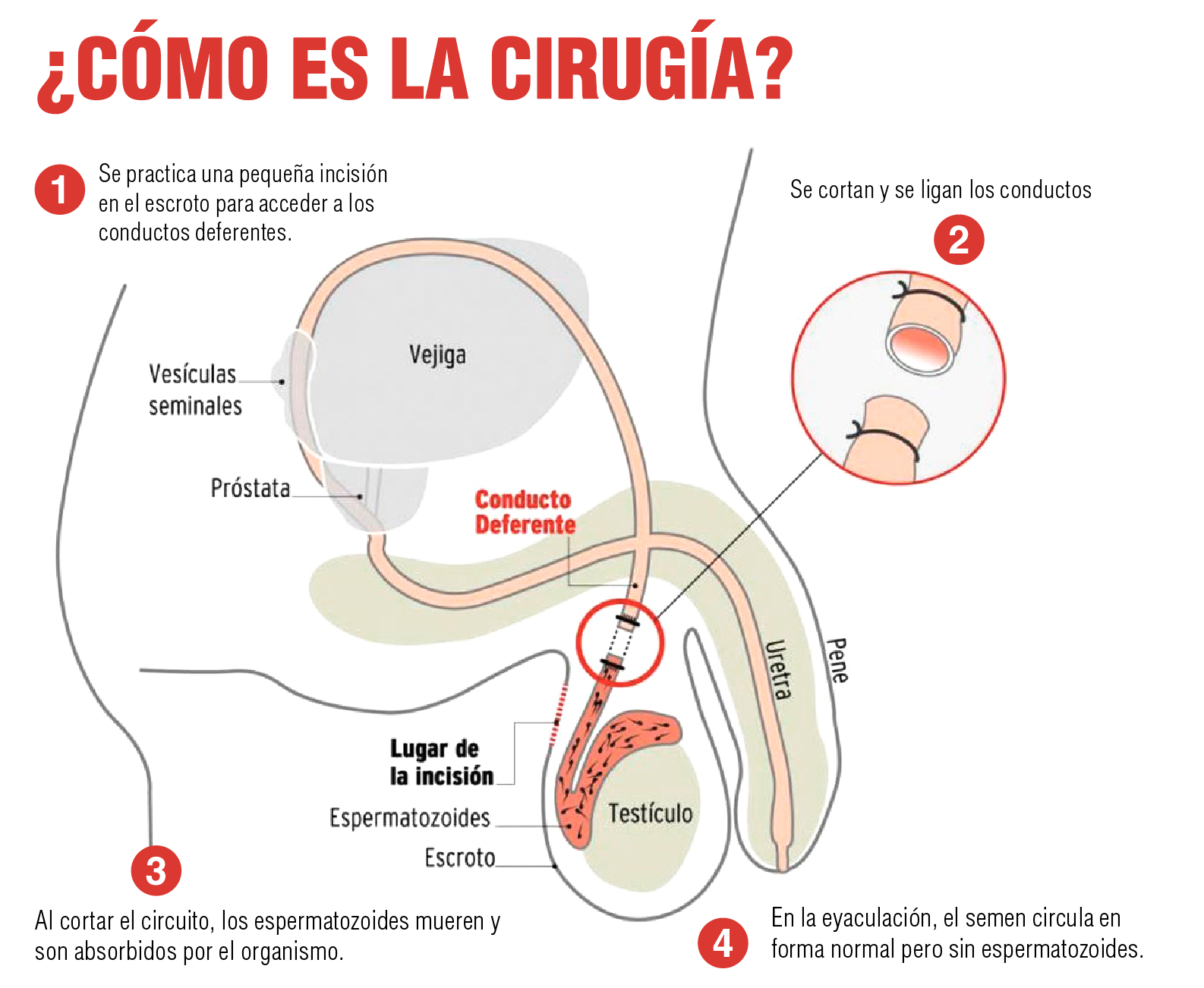 “Con la cirugía se detiene la cadena de producción de espermios, es igual que una fábrica que tiene una línea de producción y cuando se detienen los componentes que quedan a esa altura, finalmente terminan por reabsorberse, no se produce ninguna dificultad”.